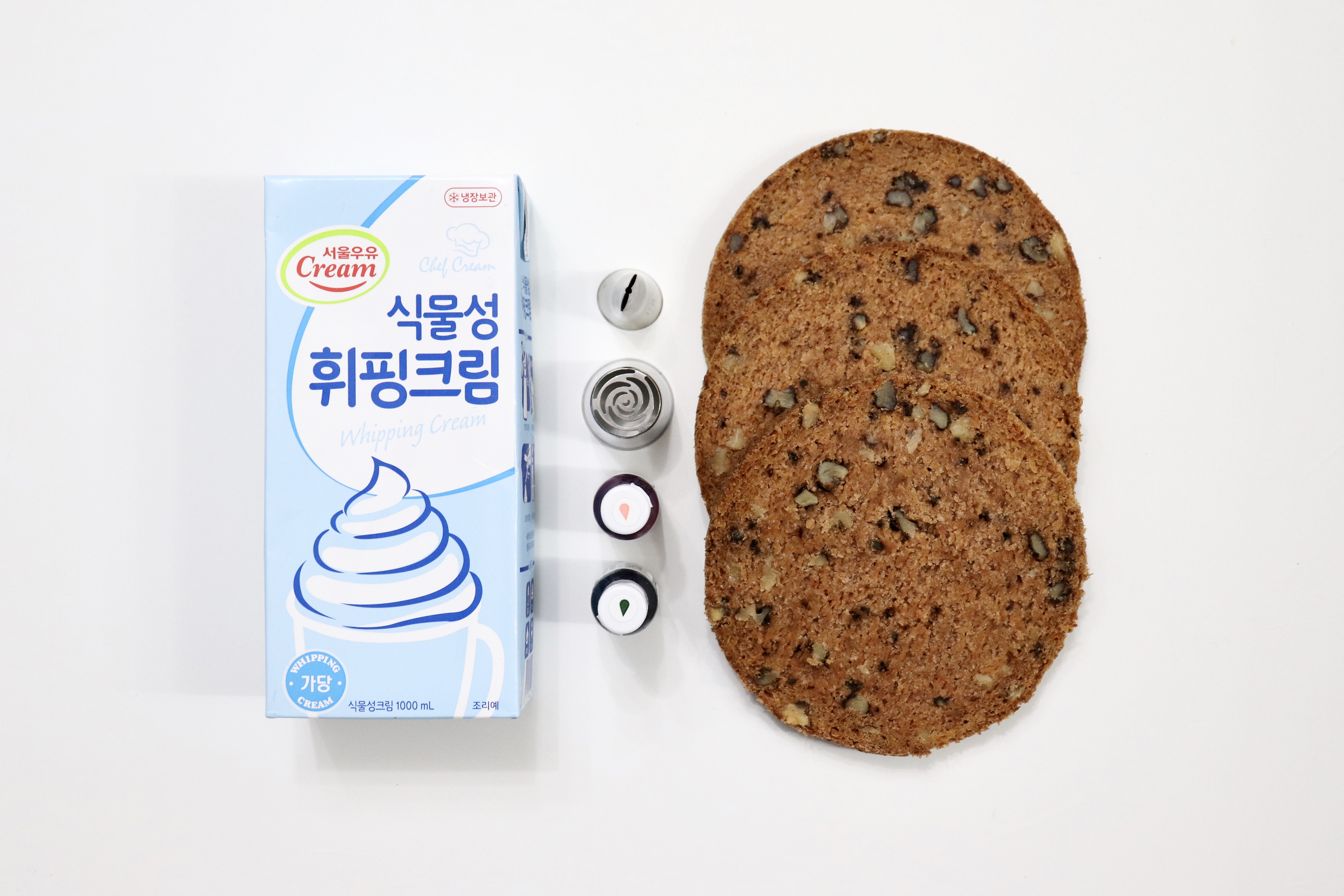 지난번에 버터, 계란 없이 당근 케이크 시트 만드는 법을 소개했었는데요. 케이크 시트를 4등분해서 윗면을 제외한 시트에 식물성 크림을 사용해 케이크를 완성했습니다.