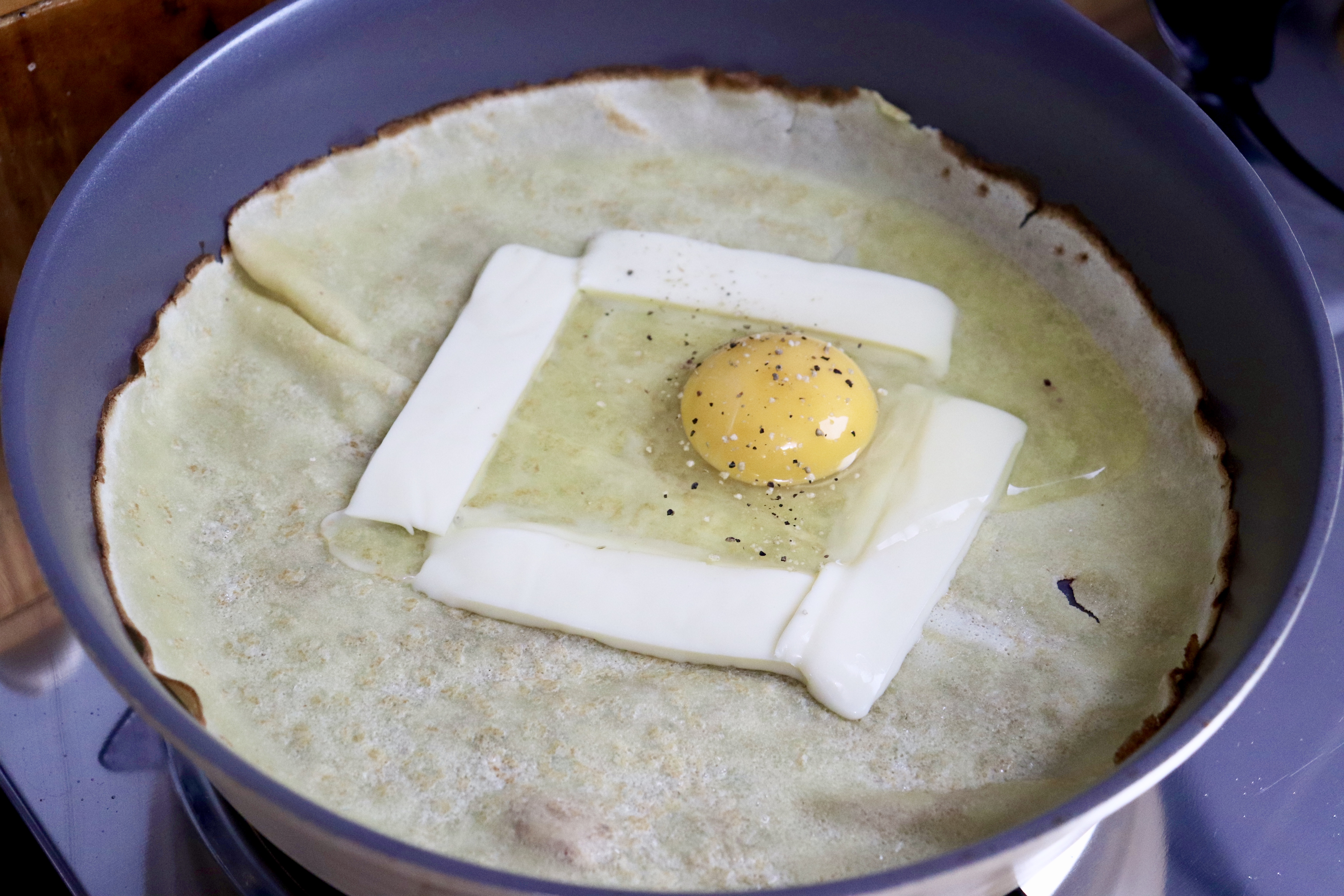 얇은 크레프 위에 베이컨, 달걀 등 다양한 재료를 넣어 즐겨 먹는 프랑스 요리, 갈레트.