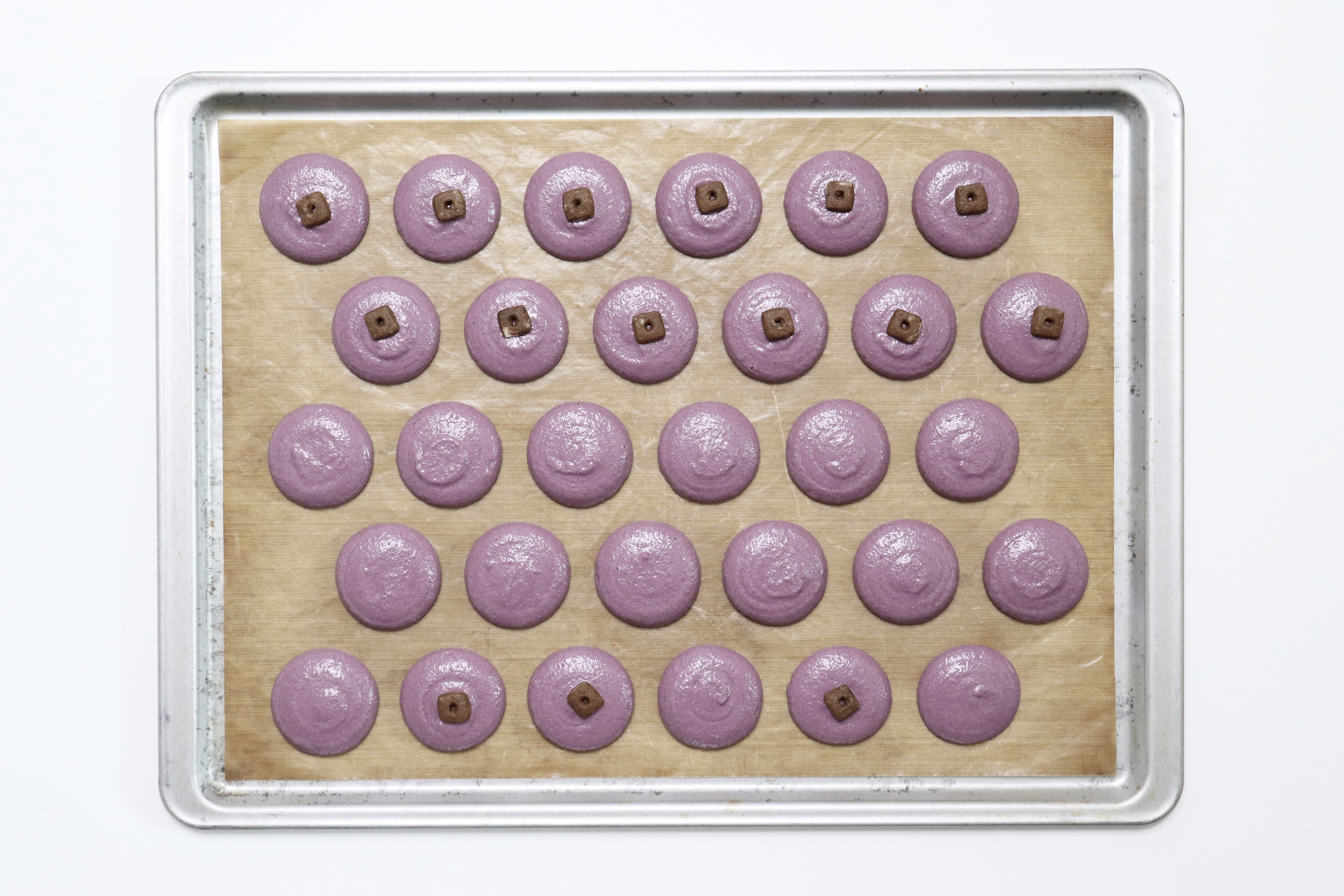 # 꼬끄 재료 : 흰자 70g, 설탕 60g, 아몬드 가루 100g, 슈거파우더 95g, 보라색 색소