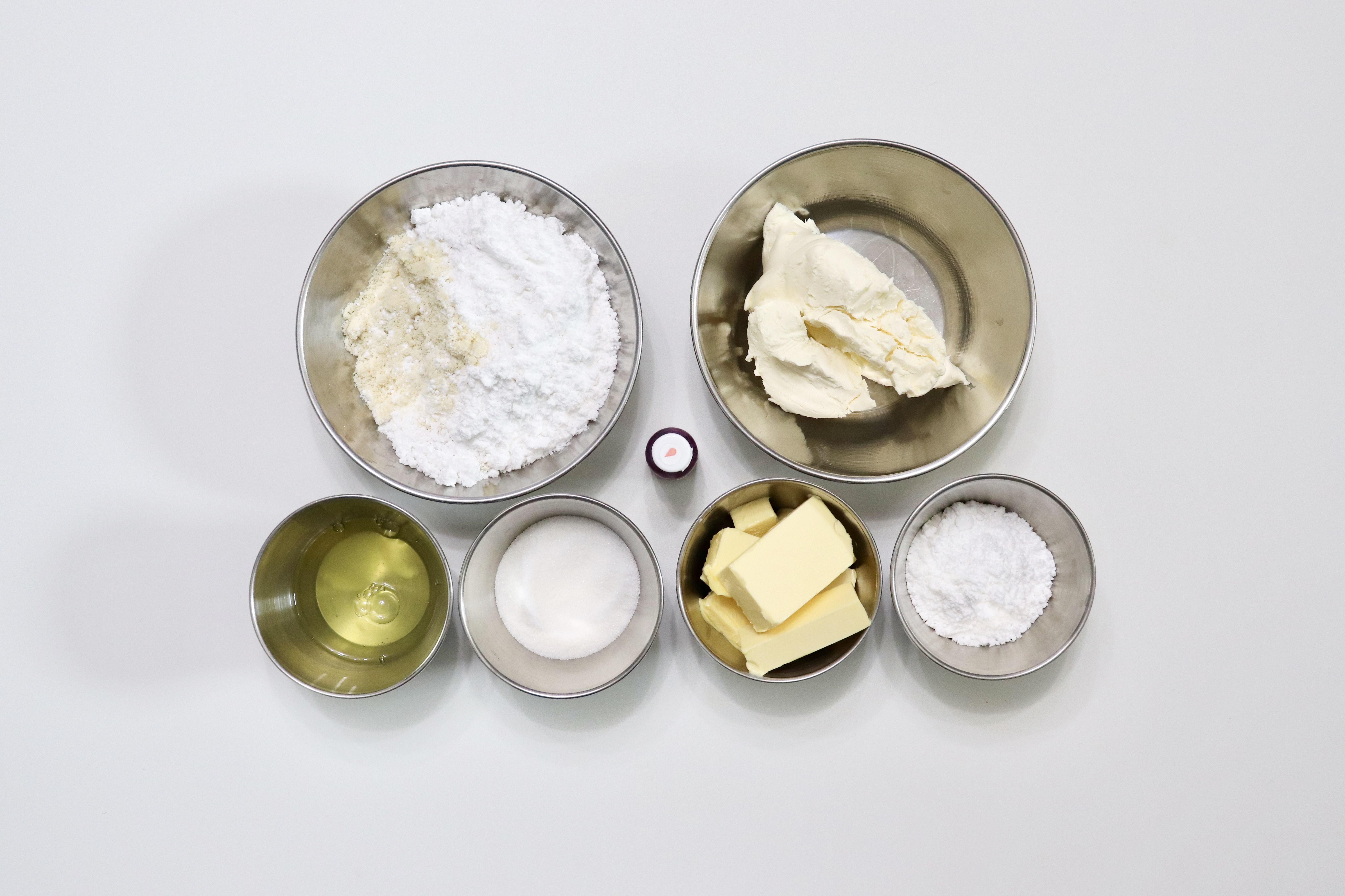 # 필링 재료 : 크림치즈 180g, 버터 120g, 슈거파우더 50g