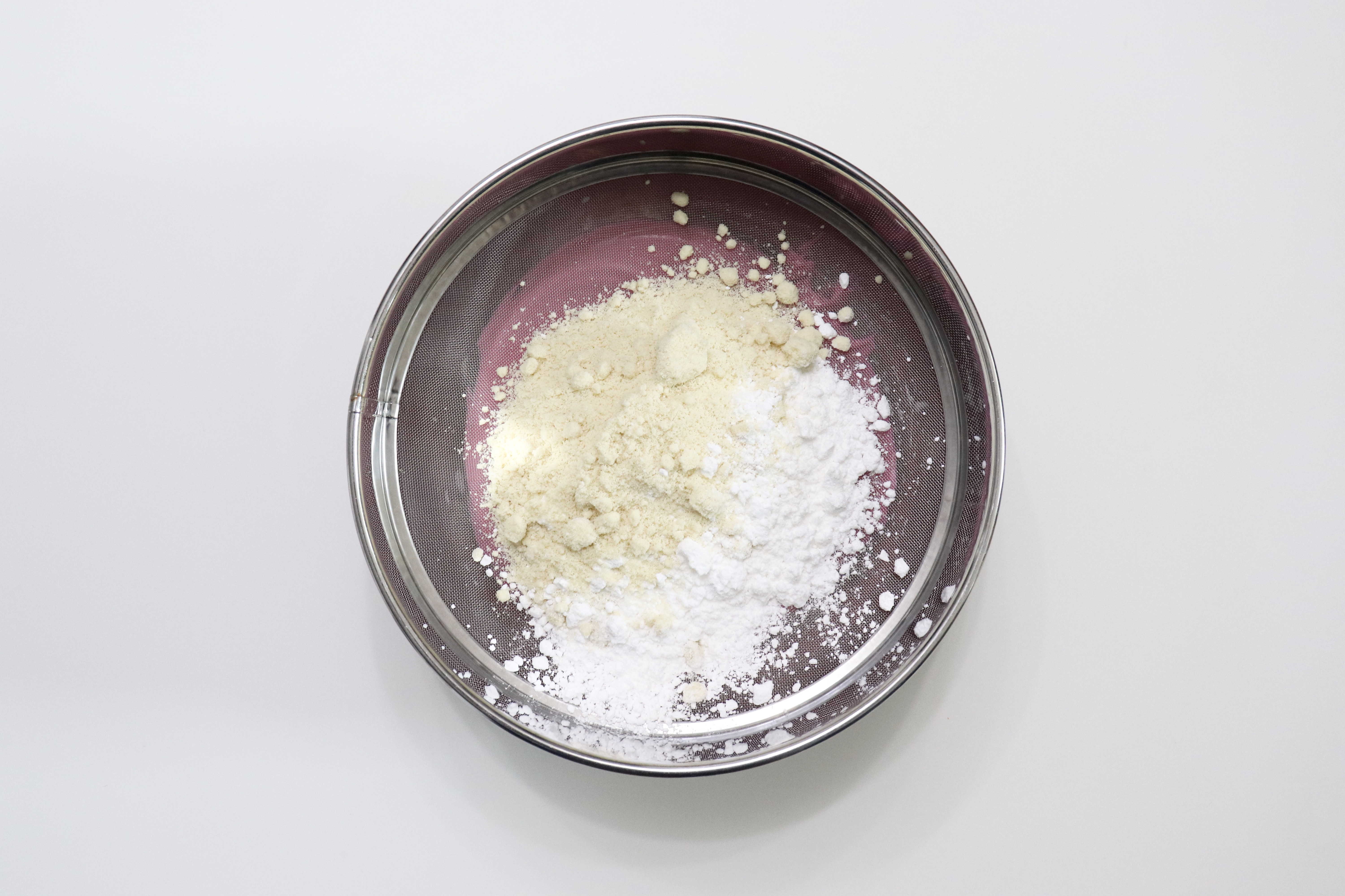 # 꼬끄 재료 : 흰자 70g, 설탕 60g, 아몬드 가루 100g, 슈거파우더 95g, 분홍색 색소