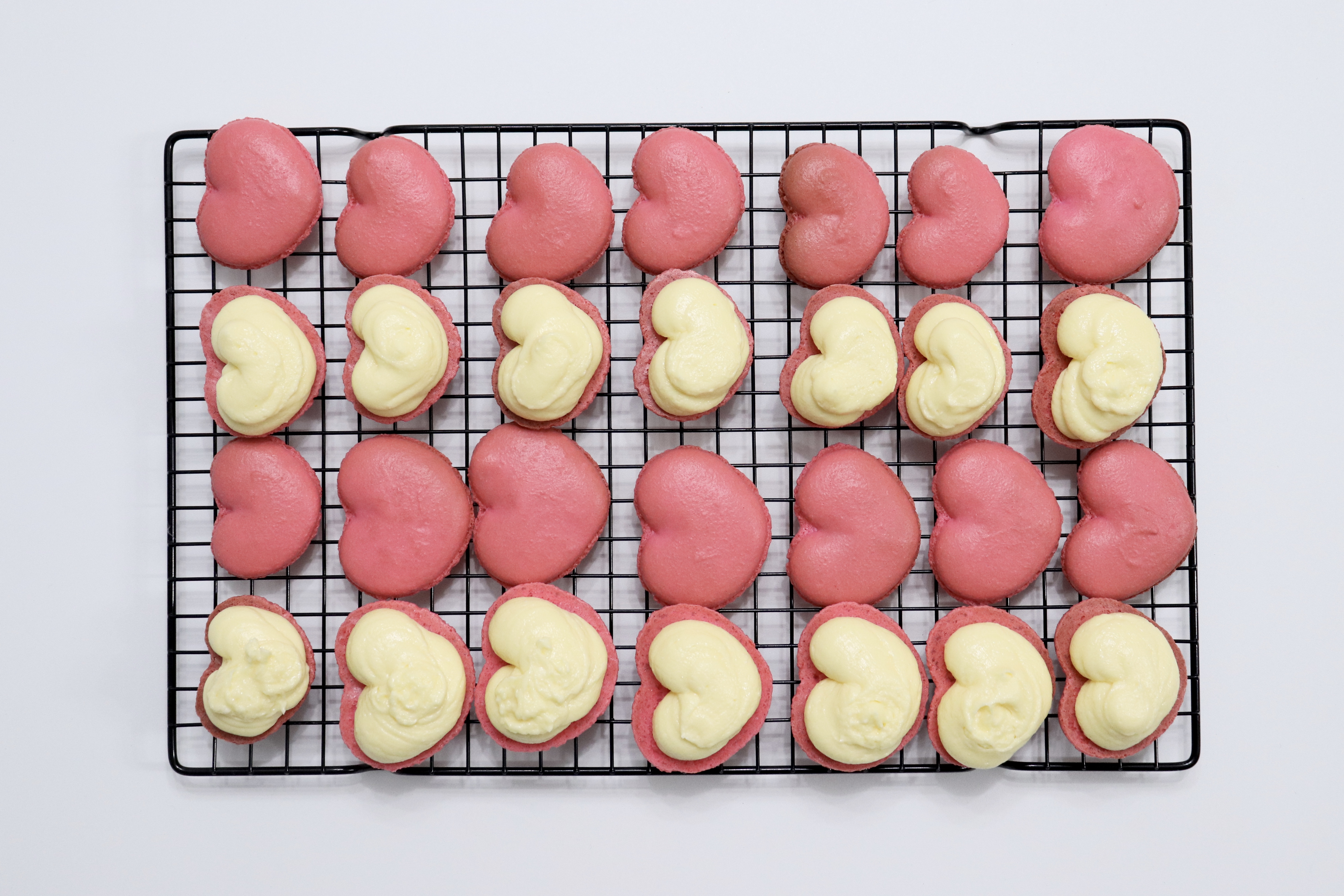 화이트데이나 발렌타인데이 선물로도 너무 좋을 것 같은 하트 모양 마카롱인 것 같습니다. 분홍색을 좋아하시는 분들에게 정말 많이 사랑받을 것 같은 마카롱이에요.
