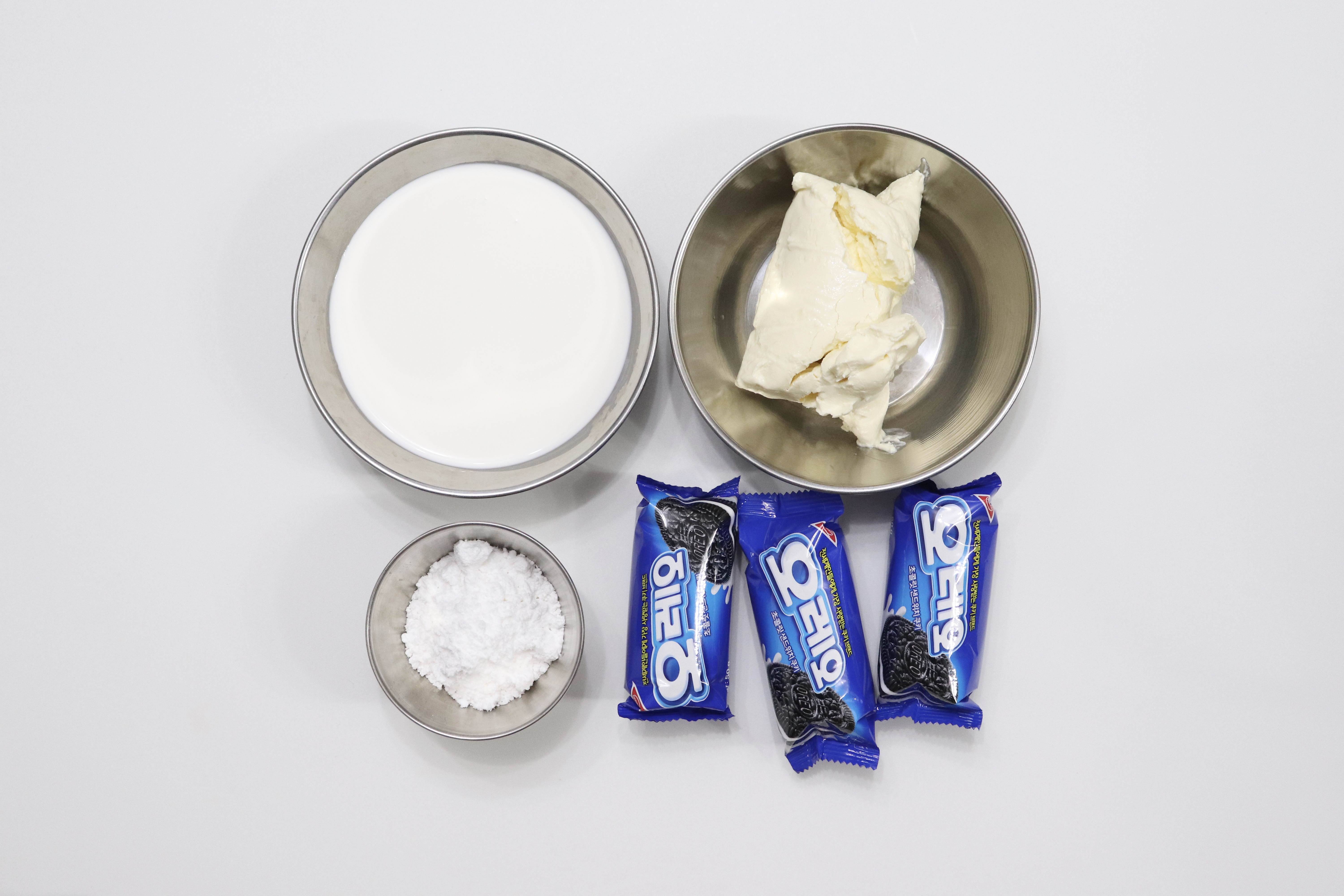 # 재료 : 생크림 300g, 크림치즈 260g, 슈거파우더 60g, 오레오 쿠키 25개