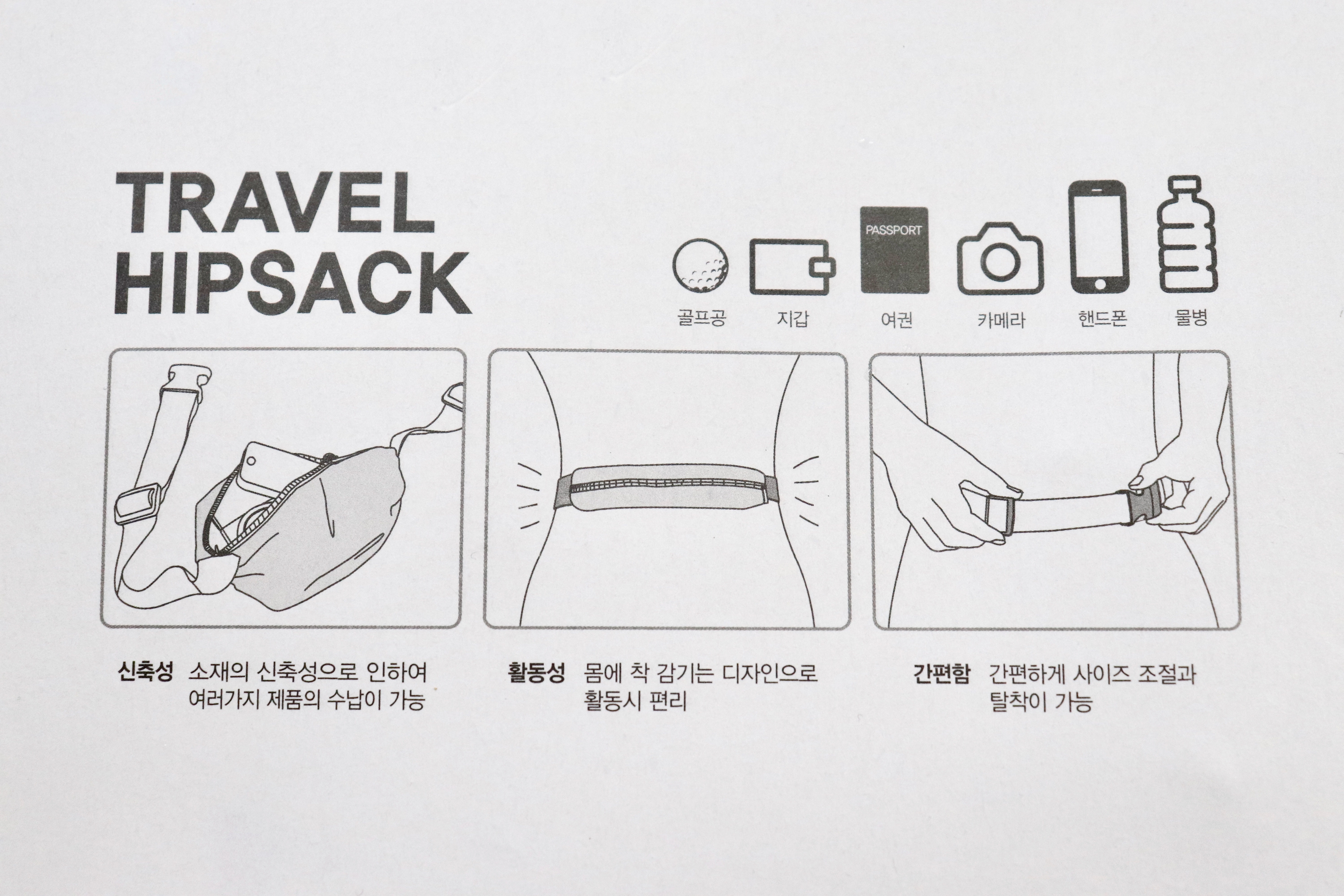 골프공, 지갑, 여권, 카메라, 핸드폰, 물병 등을 담을 수 있다는 것 같죠? 전부 한꺼번에 넣을 수는 없지만, 500ml 물병 하나 충분히 들어갈 만큼 공간이 확보됩니다.