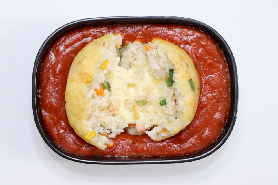 # 재료 : 냉동볶음밥 150g, 아라비아따 소스 250g, 튀김가루 30g, 슬라이스 치즈 2장 또는 모차렐라 치즈