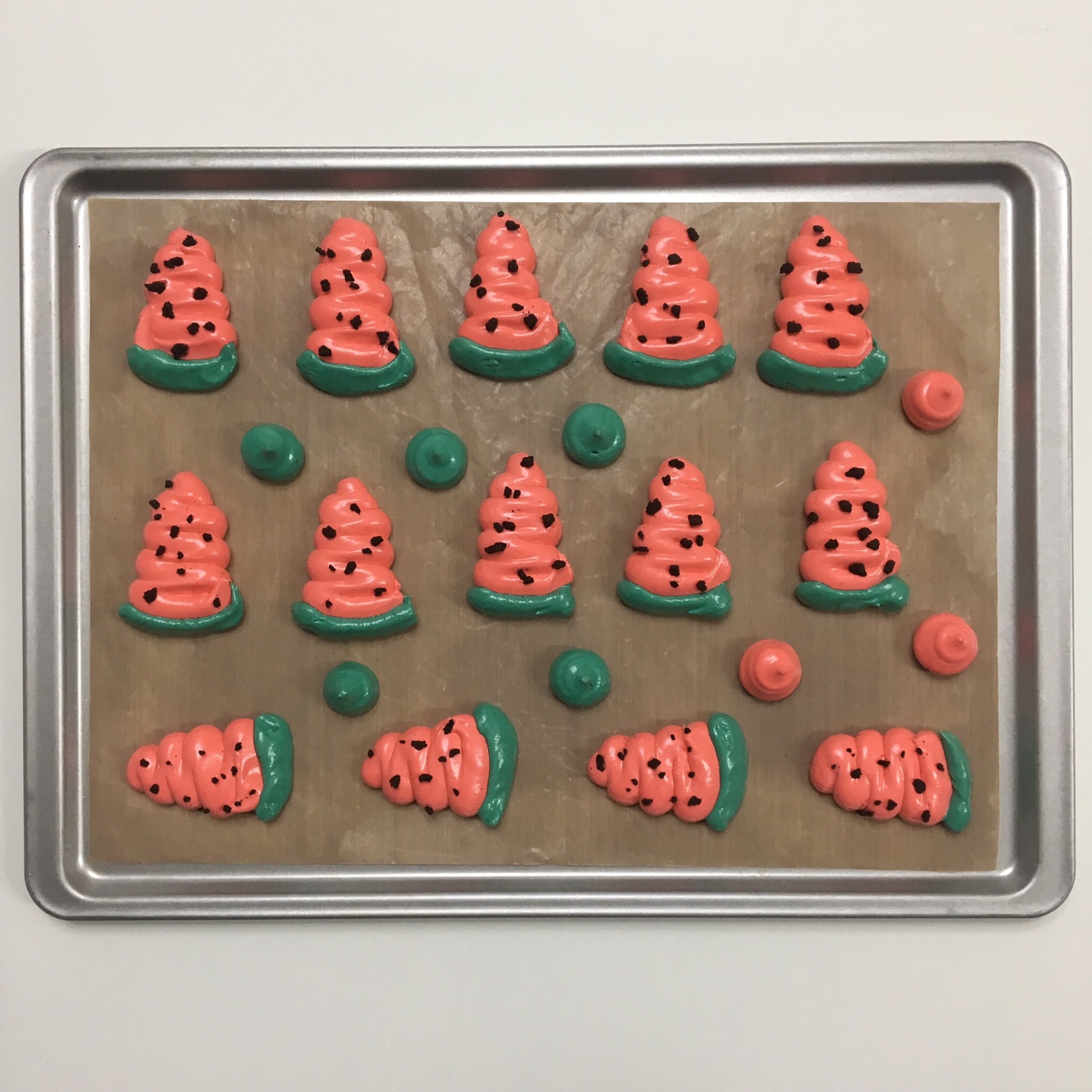 이번에 소개해드릴 것은 디저트는 시원하게 한번 만들어보고 싶어 준비했습니다. 수박 맛은 나지 않는 수박 모양 머랭 쿠키예요.