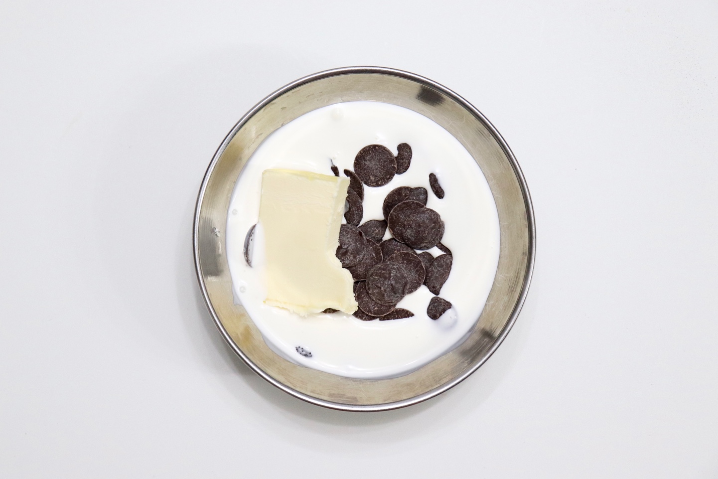 # 가나슈 재료 : 다크커버춰 80g, 생크림 70g, 버터 10g