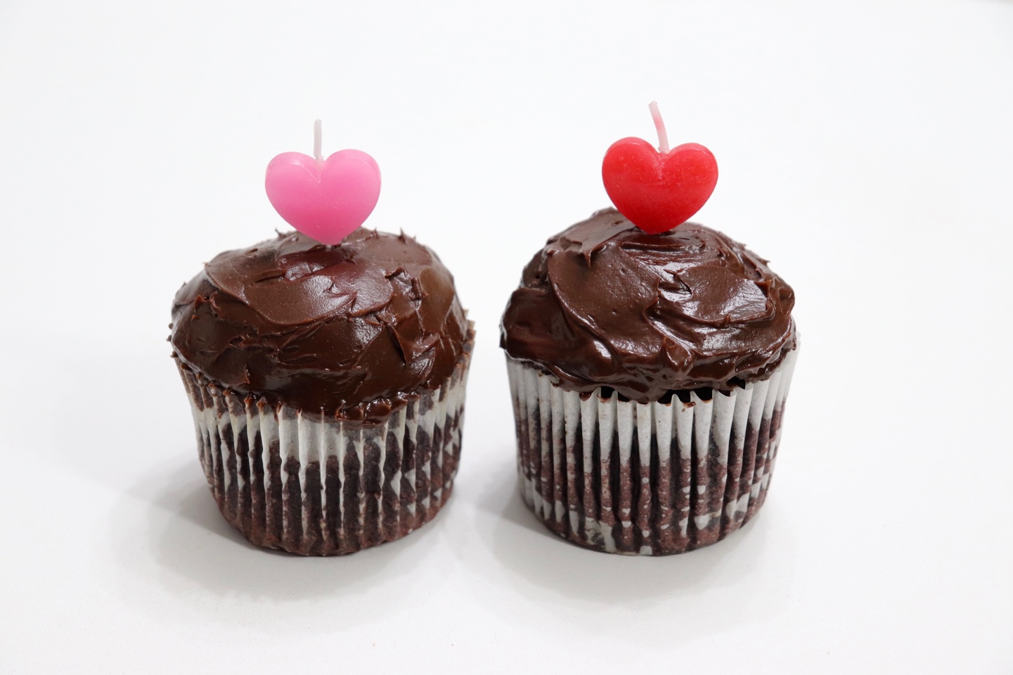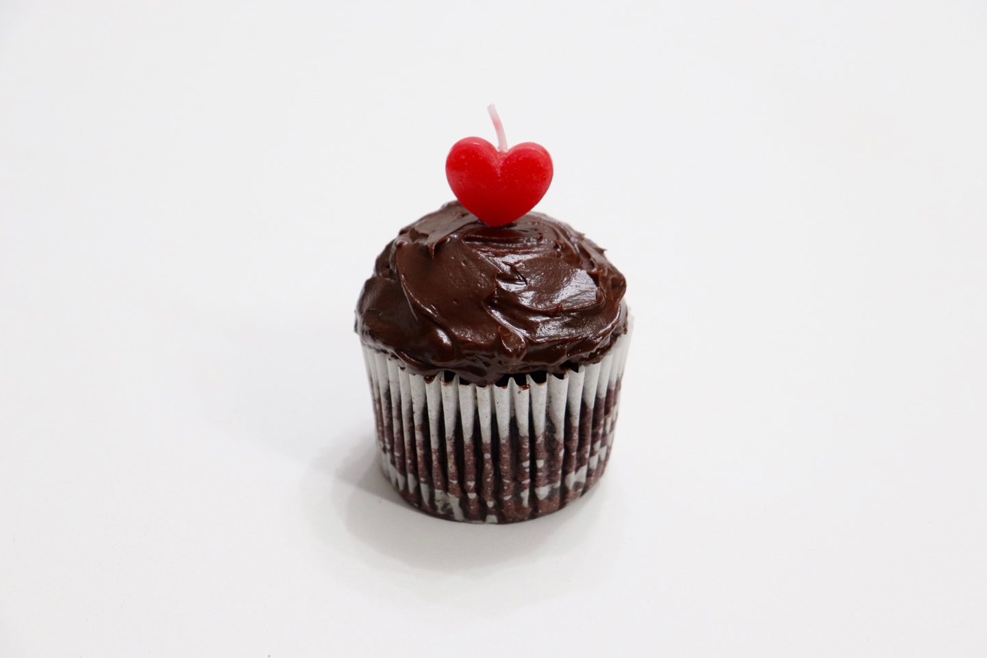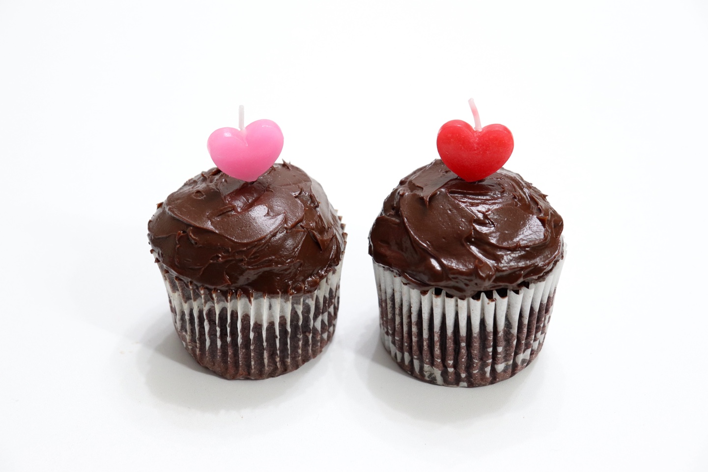 특별한 데코레이션 없이 빨간색, 분홍색 하트 모양 초를 꽂아주기만 했는데도 예뻐 보이죠? 가나슈를 잘 바르지 못하고 데코레이션을 잘 못해도 예쁜 초나 픽으로 머핀을 완성해낼 수 있어요.