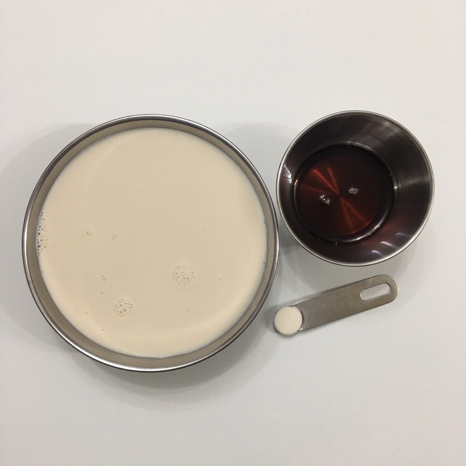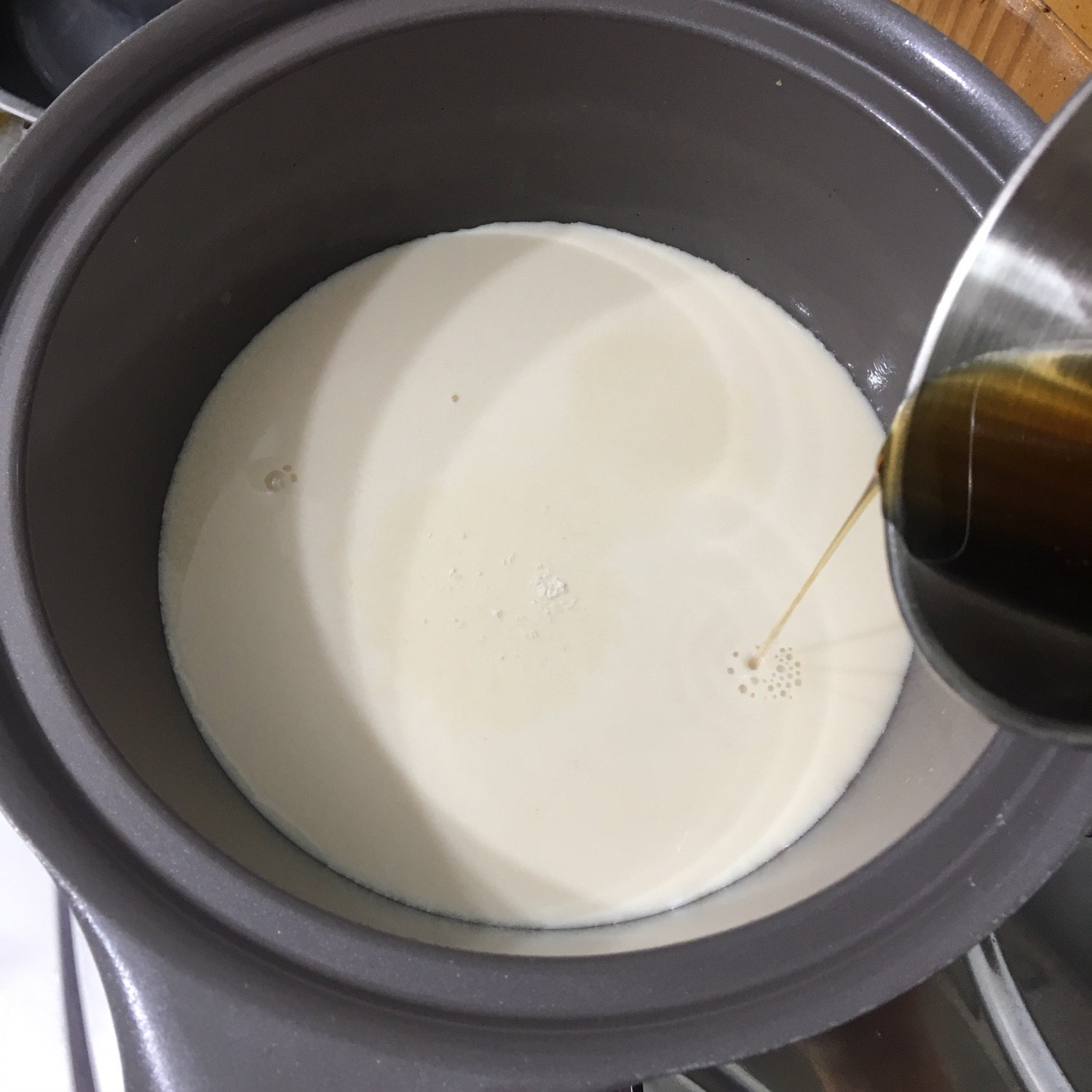 # 재료 : 두유 500g, 메이플 시럽 50g, 한천 분말 5g, 소금 한 꼬집