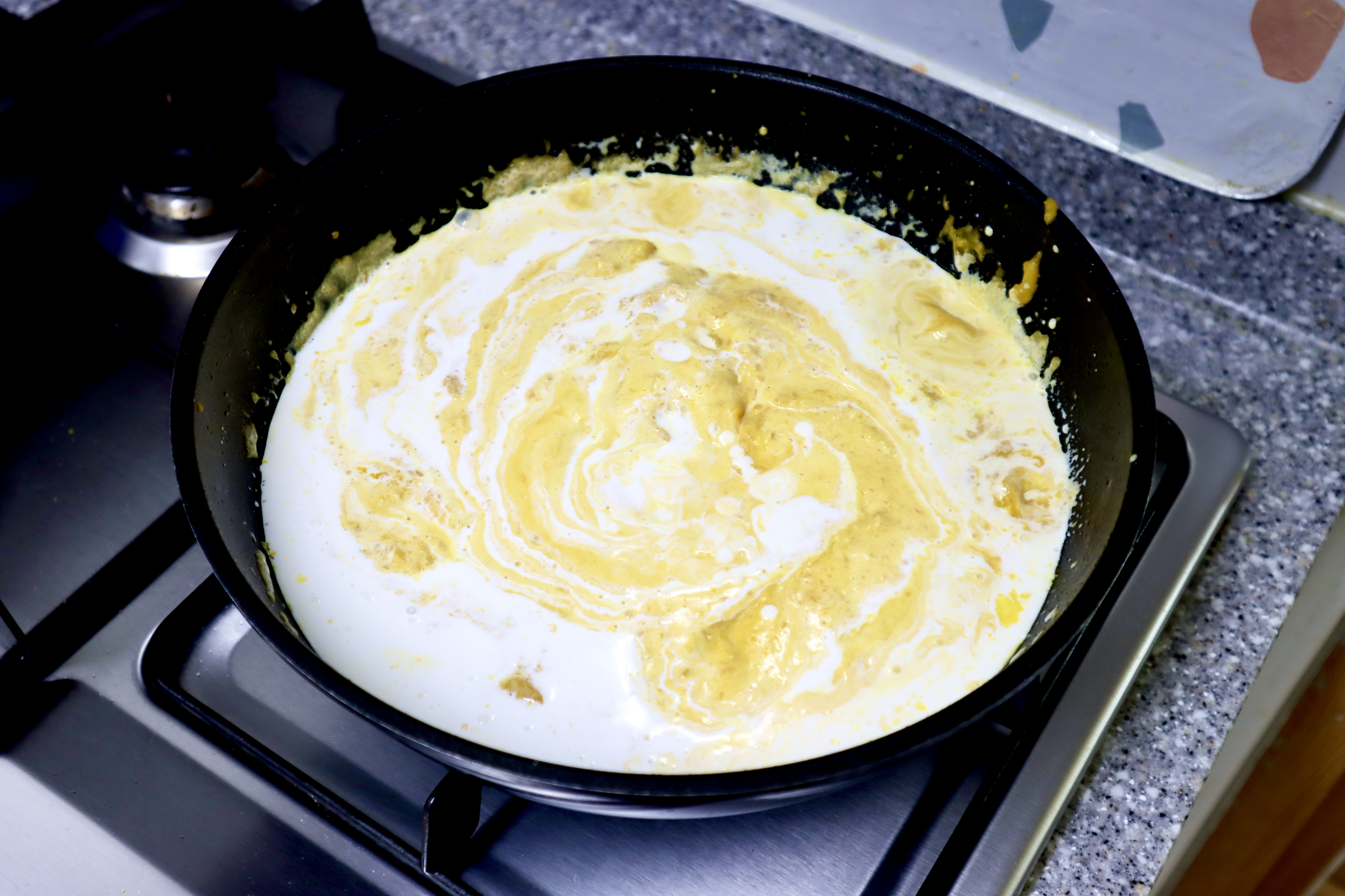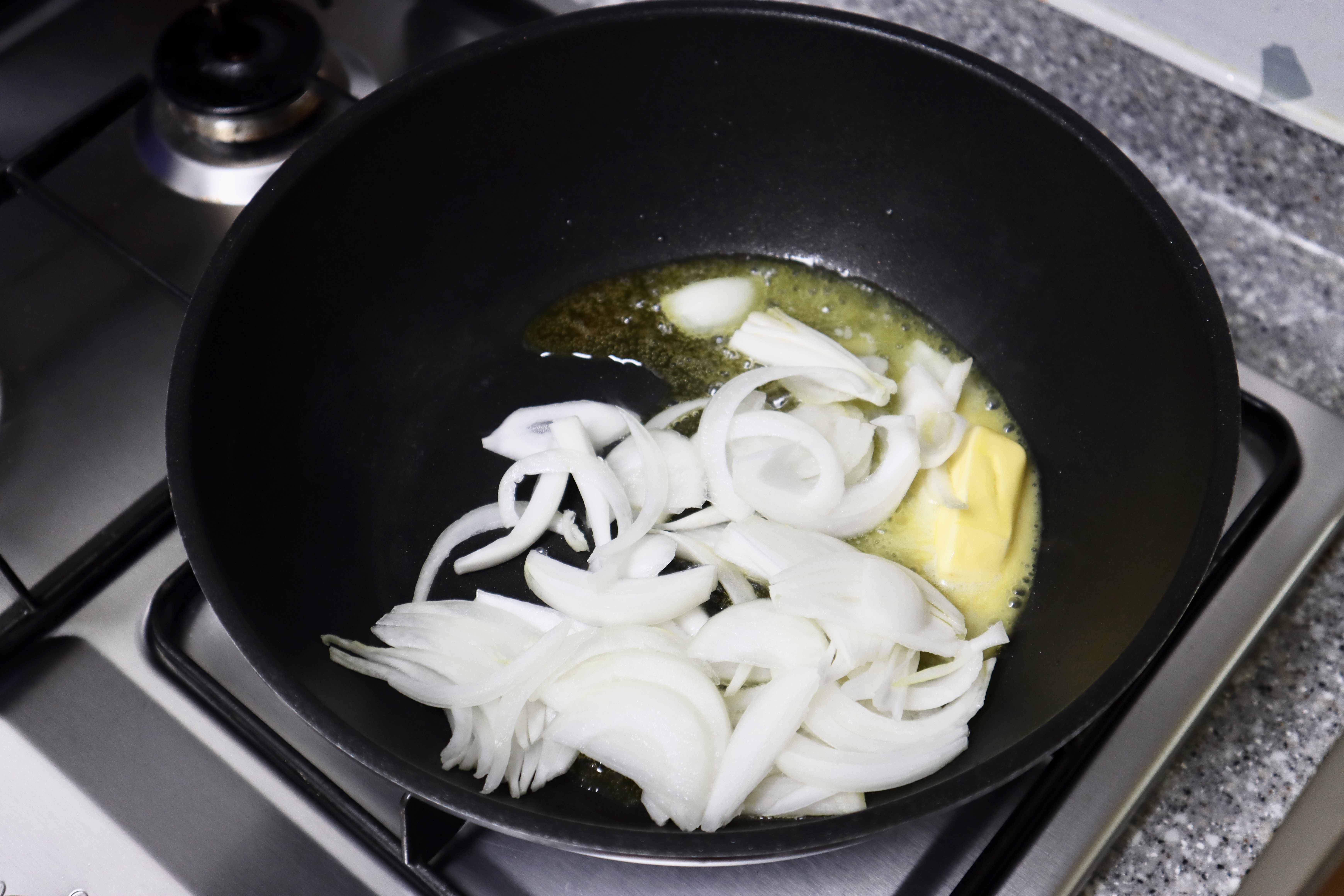 # 재료 : 찐 호박 740g, 양파 1/2, 우유 850g, 생크림 540g, 버터 40g