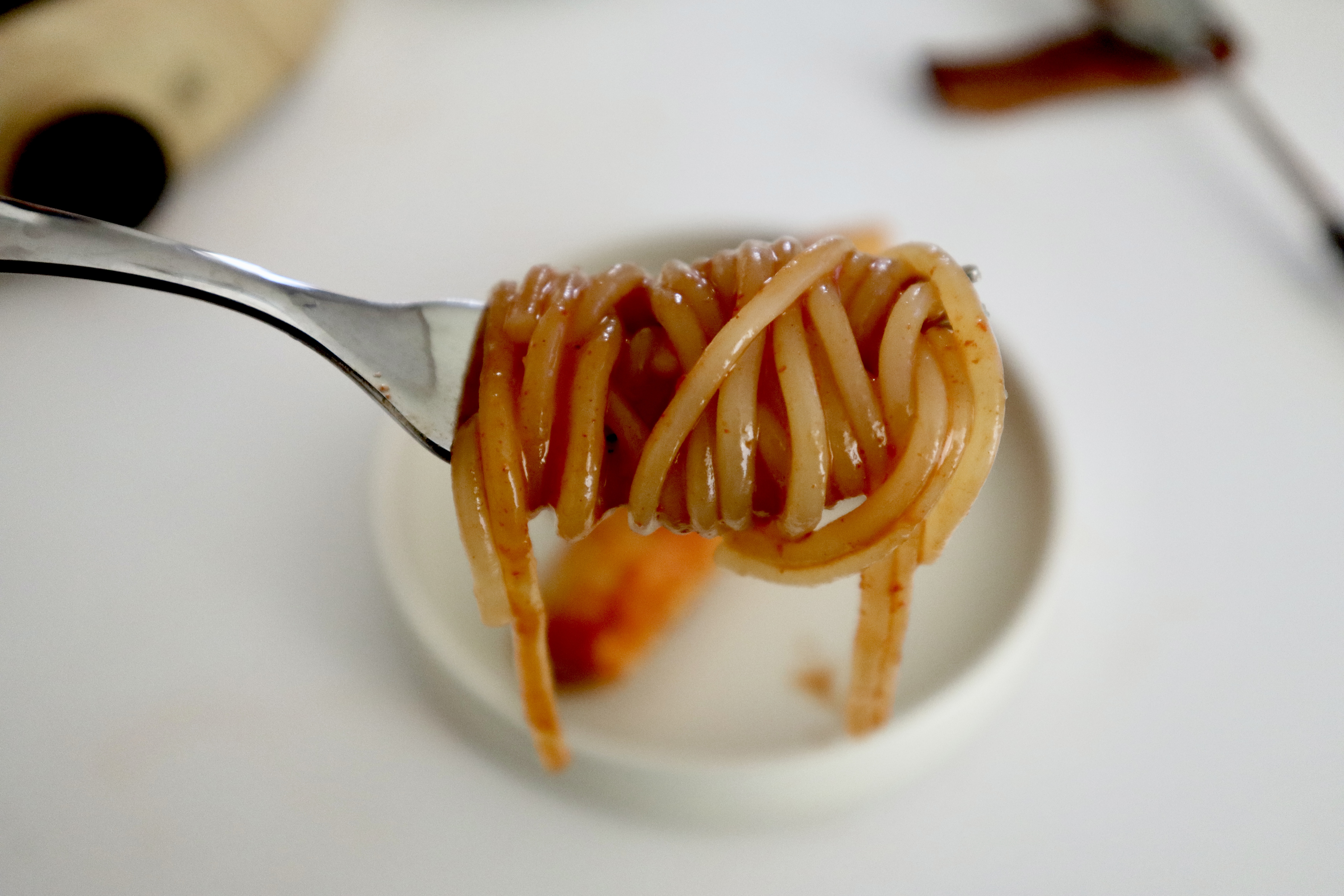 어묵과 쫄면은 불어있는 상태가 좋아서 충분히 푹 익혀줬어요. 취향껏 시간을 줄여 만드시면 됩니다. 쫄면 돌돌 말아 국물에 흠뻑 적셔 먹으면 정말 맛있습니다. 쫄면과 떡, 어묵 세 가지를 한꺼번에 먹어도 정말 맛있어요. 다 먹고 밥까지 볶아 먹고 싶었는데 아쉽게도 배가 불러서 먹지를 못했네요.