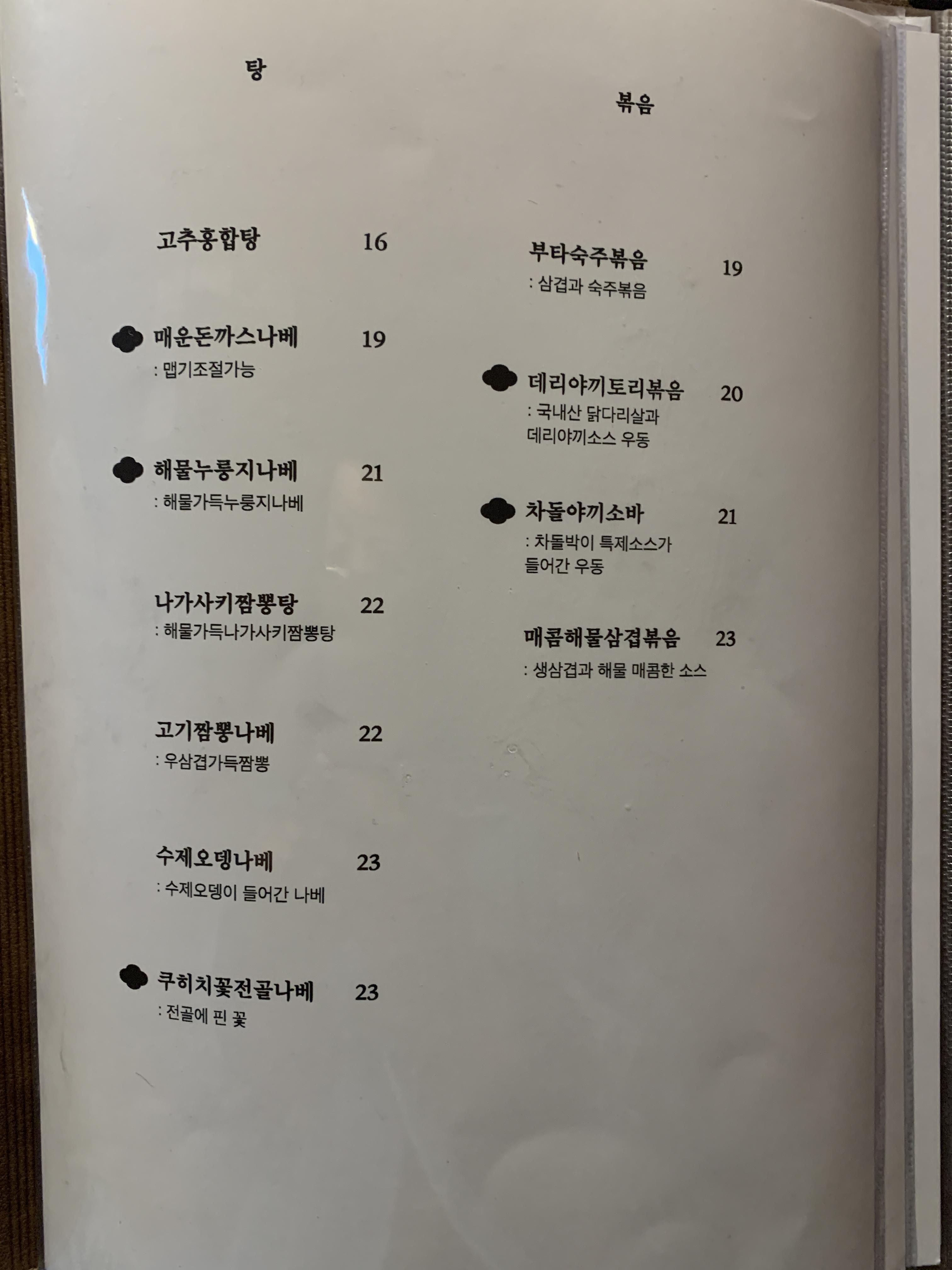 메인 메뉴 두개를 할까 싶다가 2차를 가기 위해 쿠히치 꽃 전골 나베와 감태 주먹밥을 주문했어요. 술은 서울의 밤을 주문했는데, 기본으로 제공되는 토닉워터와 레몬 없이 모두 따로 주문해야 합니다.