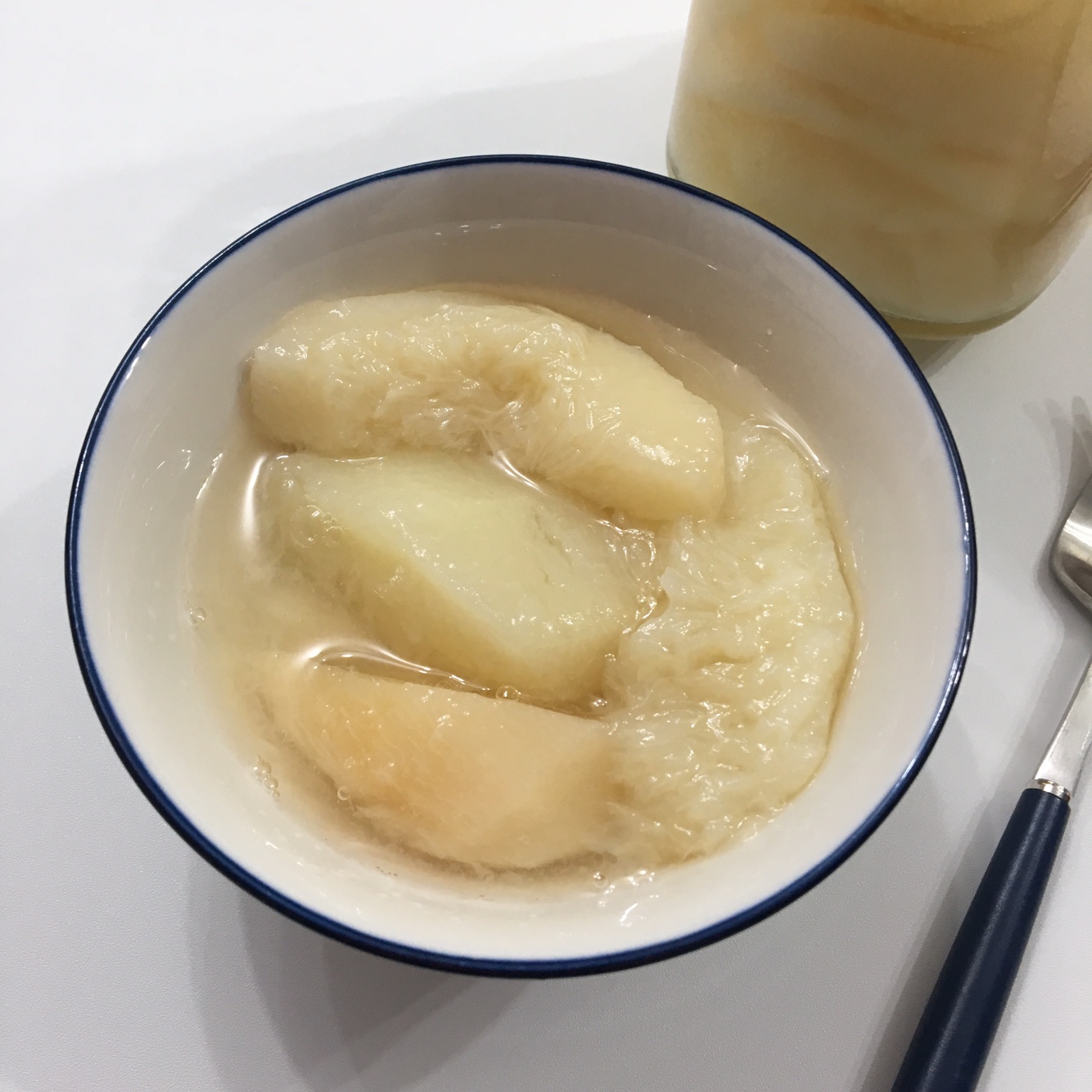 약 400ml 병에 가득 채울 수 있는 복숭아 조림을 만들 수 있는 레시피입니다. 복숭아는 야구공 정도의 크기입니다.