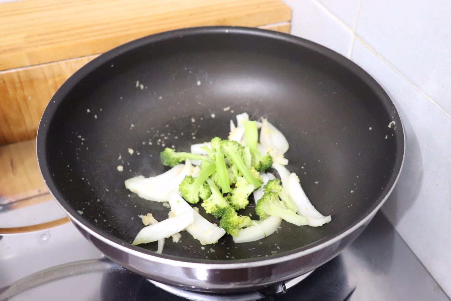 # 재료 : 푸실리, 토마토소스, 양파, 브로콜리, 모차렐라 치즈, 슬라이스 치즈, 다진 마늘, 버터