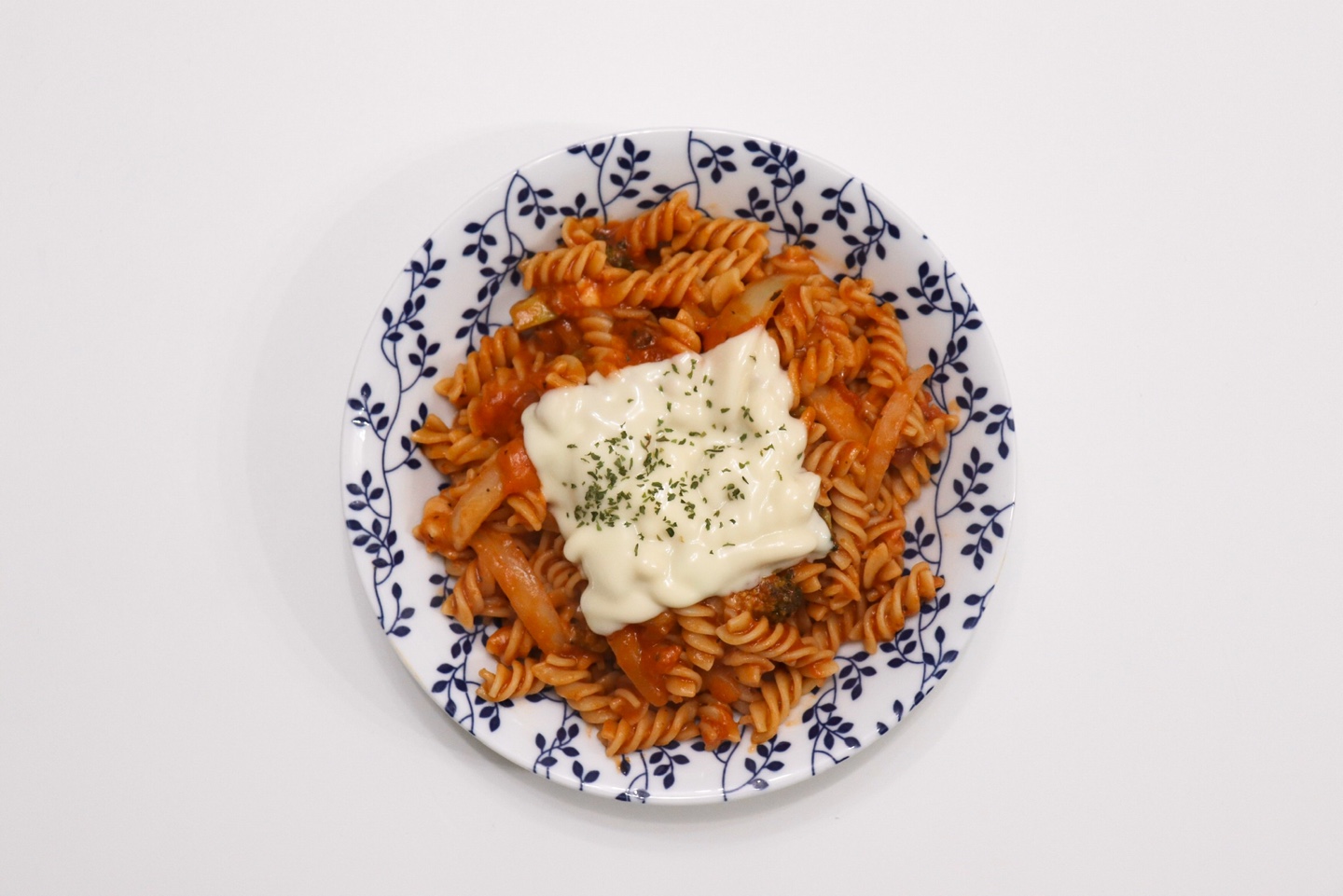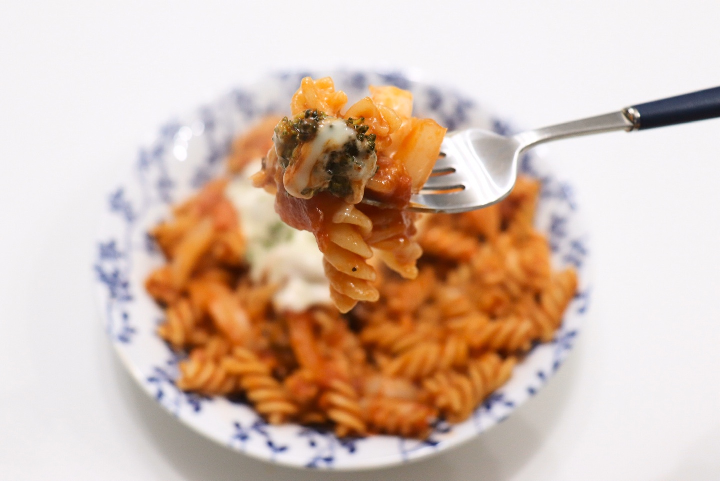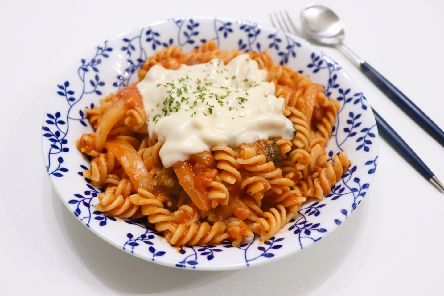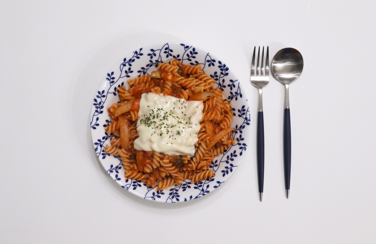 푸실리는 단백질이 부족한 경우가 있어서 우유 단백질이 풍부한 치즈와 함께 먹으면 영양 보완이 된다고 해요. 모차렐라를 넣고 슬라이스 치즈와 함께 먹으니 좋겠죠?^^