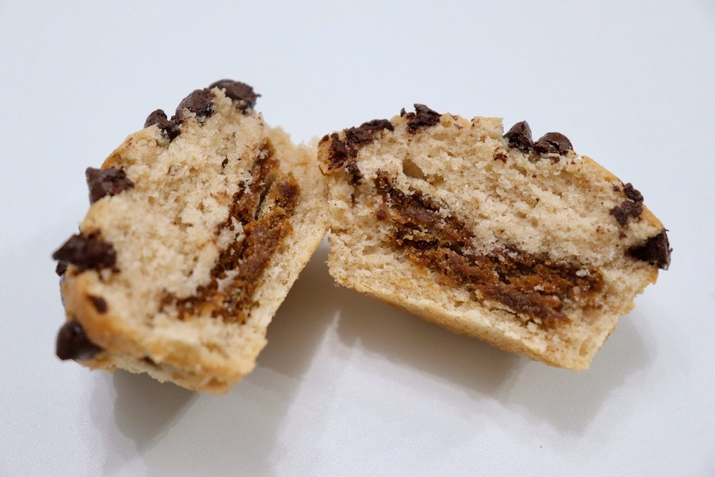 계피향이 은은한 머핀에 촉촉해진 로투스 쿠키가 너무 잘 어울립니다. 식감은 촉촉하지만, 한입 가득 입에 배어 물면 묵직해서 우유나 커피를 마시면 정말 맛있죠. 촉촉한 머핀과 로투스의 식감에 위에 뿌려준 오독오독 씹히는 초코칩의 조합이 괜찮게 느껴지네요.