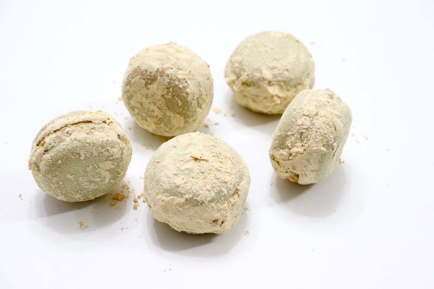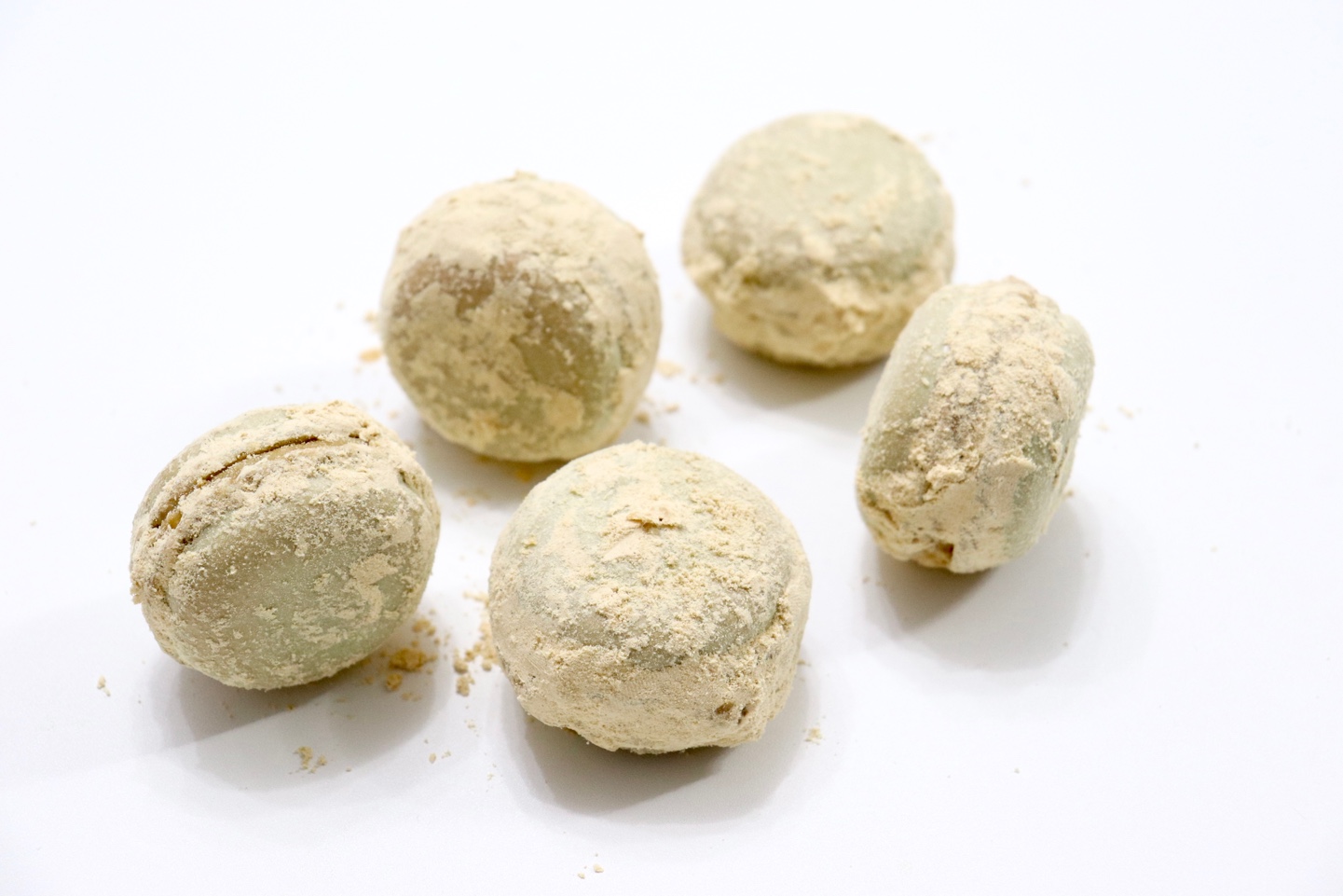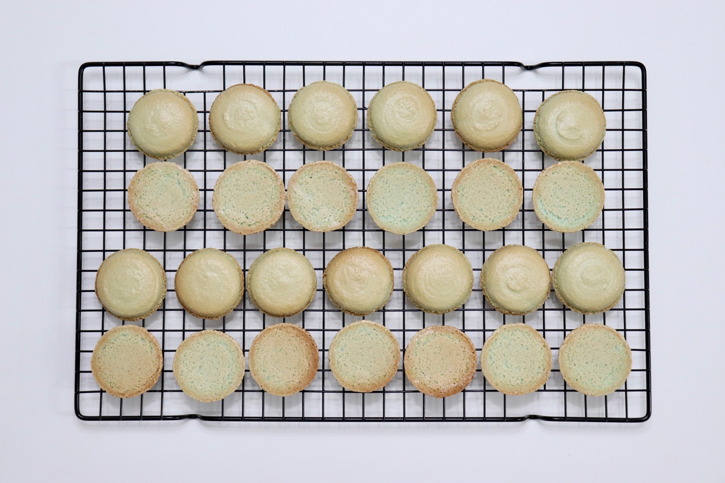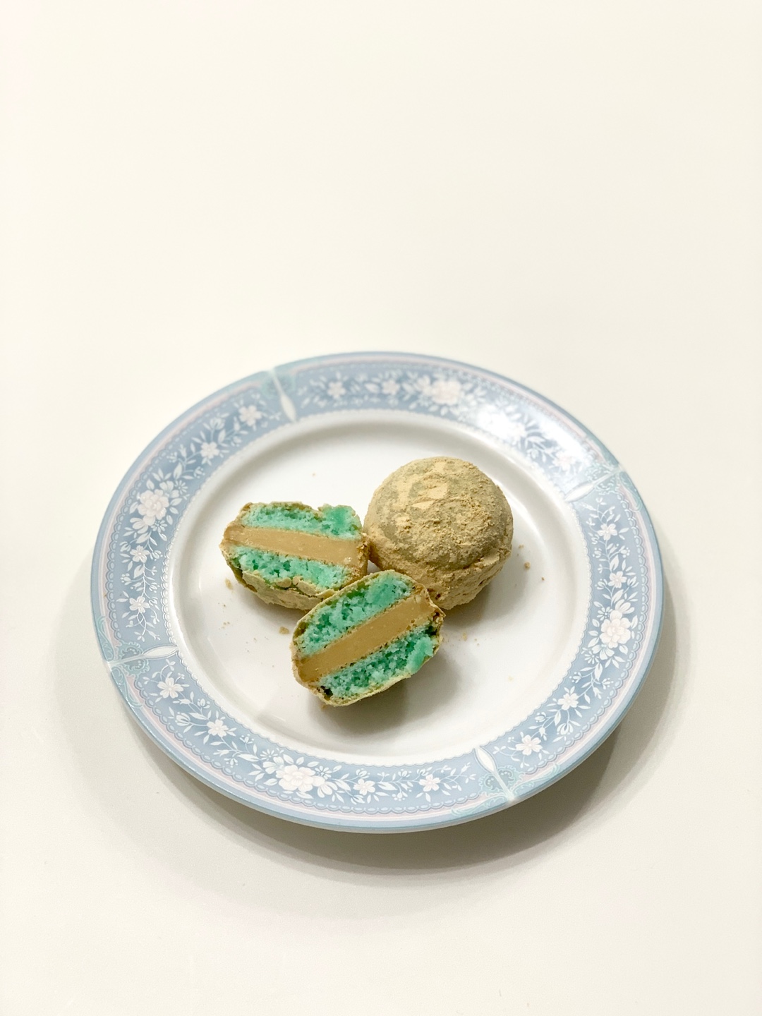 대두 고물을 넣어 만든 필링과 겉에 묻힌 가루들이 너무 과하지 않을까 싶었는데, 적당히 달달하면서 고소하니 새로운 맛의 마카롱이 완성된 것 같아요. 처음에 색소는 고민했었는데 은은한 하늘색, 민트색 빛 꼬끄가 반 쪼개어 봤을 때 예쁘고 대두 고물과 정말 잘 어울리는 것 같아요. 색소 없이 하셔도 예쁠 것 같고, 가운데 빙수떡 등을 넣어주셔도 더 맛있고 재밌는 식감을 줄 수 있을 것 같아요. 대두 고물이 없으시면 미숫가루를 활용하셔서 만들어보시면 좋을 것 같습니다 :-)